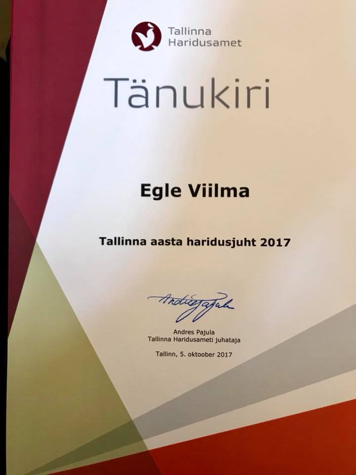 Tallinna 2017 aasta haridusjuhiks valiti Tallinna Toomkooli direktor Egle Viilma. Ta on Tallinna Toomkooli üks taasasutajatest ning on teinud sellest ühe Eesti parima kooli. Palju õnne!