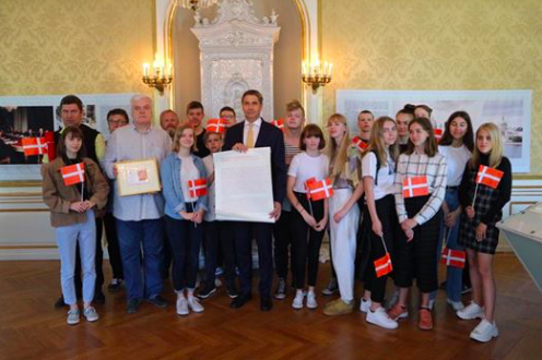 Täna, 4. juuni hommikul andsid Tallinna Toomkooli õpilased õppereisil Amalieborgi lossis Kopenhaagenis üle tervituskirja Taani kuninganna Margrethe II-le. Sündmus märkis sümboolselt Taani rahvuslipu Dannebrogi 800. ja Tallinna Toomkooli 700. aastapäeva. Oma kooli sünnipäeva otsustas kool tähistada õppereisi raames külaskäiguga Amalieborgi kuningalossi, sest taanlaste poolt XII sajandil asutatud Tallinna Toomkooli on esmakordselt mainitud Taani kuningas Erik VI Menvedi poolt välja antud ürikus. 15.-16. juunini külastab Eestit Taani kuninganna Margrethe II. Temale adresseeritud kirja koostasid ja andsid üle 8. klassi õpilased, kes on sündinud vabas Eesti riigis. Kirja üleandmise päevaks valiti Eesti rahvuslipu 135. aastapäev. Kalligraafiliselt kujundatud ning kaunisse punavalgesse vutlarisse paigutatud kirjas meenutasid Tallinna Toomkooli õpilased ühiselt seda, mis Taanit ning Eestit ajalooliselt seob.„Teie Majesteet, eelmise aastatuhande algus ulatub tagasi ristiusu saabumisaega Eesti aladele. Need enam kui kaheksa sajandit on sidunud Eestimaa ning meie rahva igaveseks Euroopa ajaloo ja kultuuriruumiga,“ seisis kirjas. „Eesti Vabariigi noorte kodanikena on meil au omada liitlast ja partnerit, kellega jagame nii ühist ajalugu, kultuuri kui ka väärtusi.“ Pöördumises meenutati tänulikult Taani riigi toetust nii Eesti iseseisvumisel kui ka nüüd. „Meie oleme sama vanad, kui meie vanemad siis, kui Eesti Vabariik taastas iseseisvuse augustis, 1991. Nad on meile rääkinud, kui tähtis oli sel hetkel Taani toetus koos Islandiga nii meie rahva eneseteadvusele kui ka rahvusvaheliselt.“ Taani riigi toetus taasiseseisvumise perioodil ning edasine koostöö nii Euroopa Liidus kui ka NATOs on aidanud kirja allkirjastanud Tallinna Toomkooli noortel kasvada vabas riigis. Lisaks õpilastele kirjutasid kirjale alla teiste seas ka Tallinna Toomkooli SA esimees, EELK peapiiskop Urmas Viilma ning Toomkooli direktor Egle Viilma.